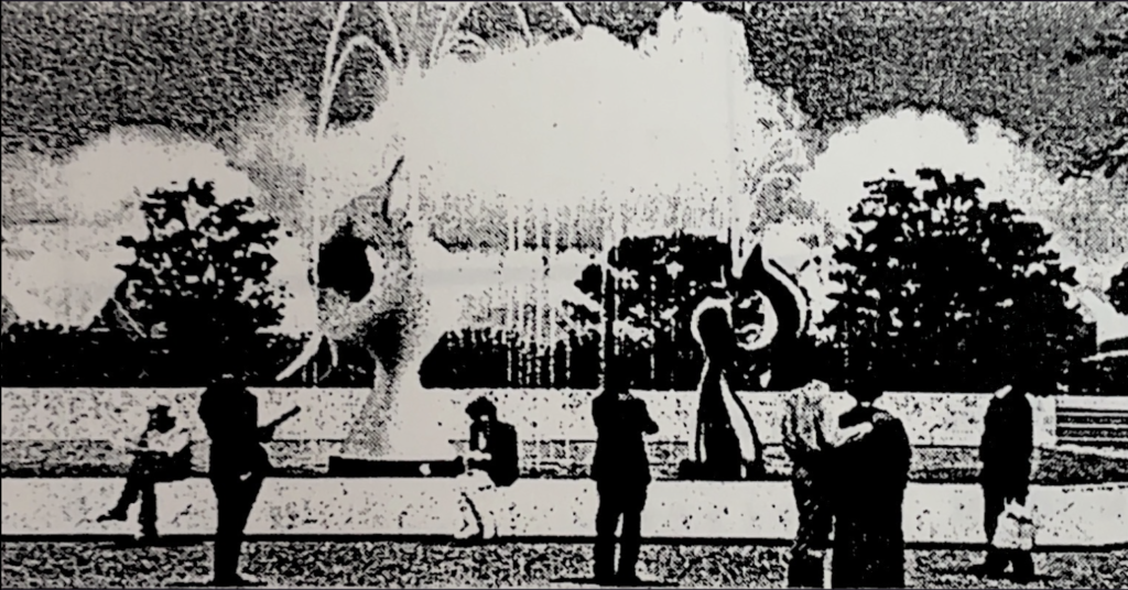 岡本太郎氏が制作するモニュメントと噴水の完成予想図