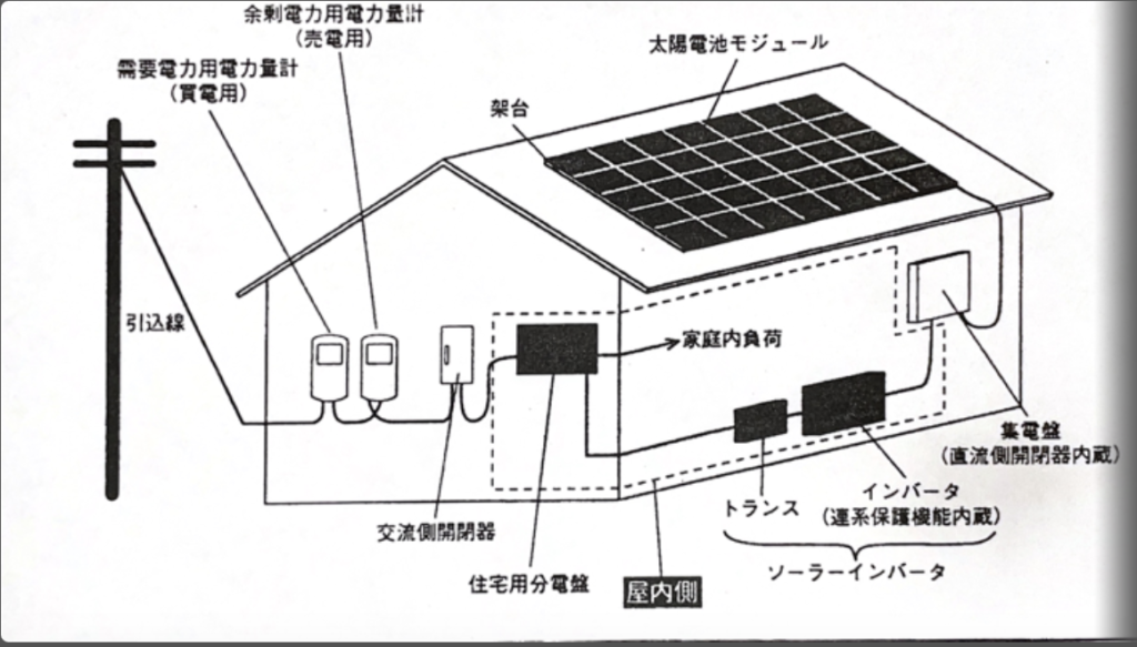 ④ソーラーインバータ…・・太陽電池の直流電力を交流電力に変換する。