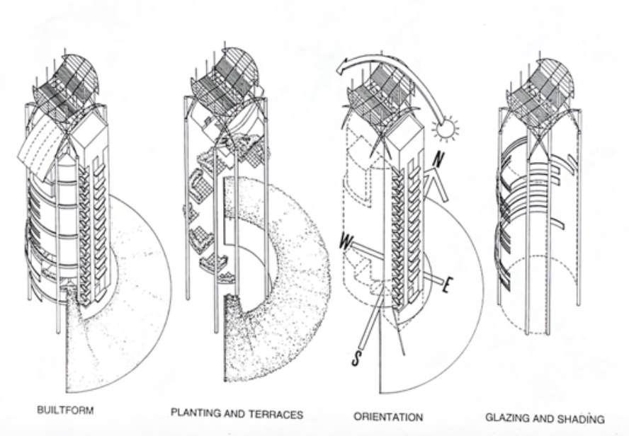 マレーシアの建築家ケン・ヤング氏 は、アジア・亜熱帯地域における風、雨、光と影などの厳しい自然環境との適合を重要課題としてとらえ、高層建築の新しい姿を模索している。